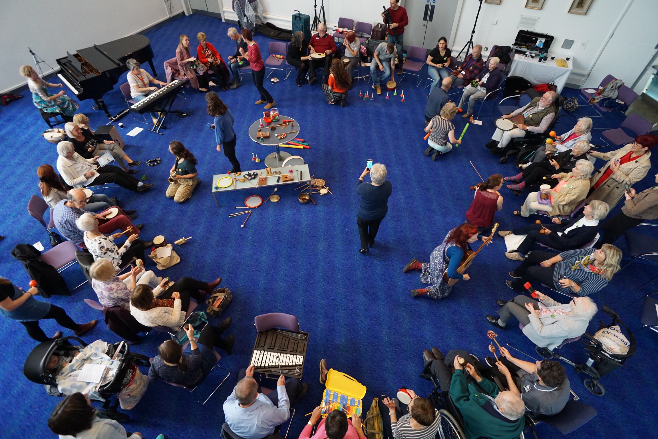 We specialise in making music in health and social care settings, with people living with life-limiting conditions such as dementia or brain injury, or experiencing mental health needs. We also love to bring different communities of people together to make music and share experiences.